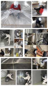 負圧除塵機を設置する事で除去時に粉塵を曝露させずに作業が出来ます